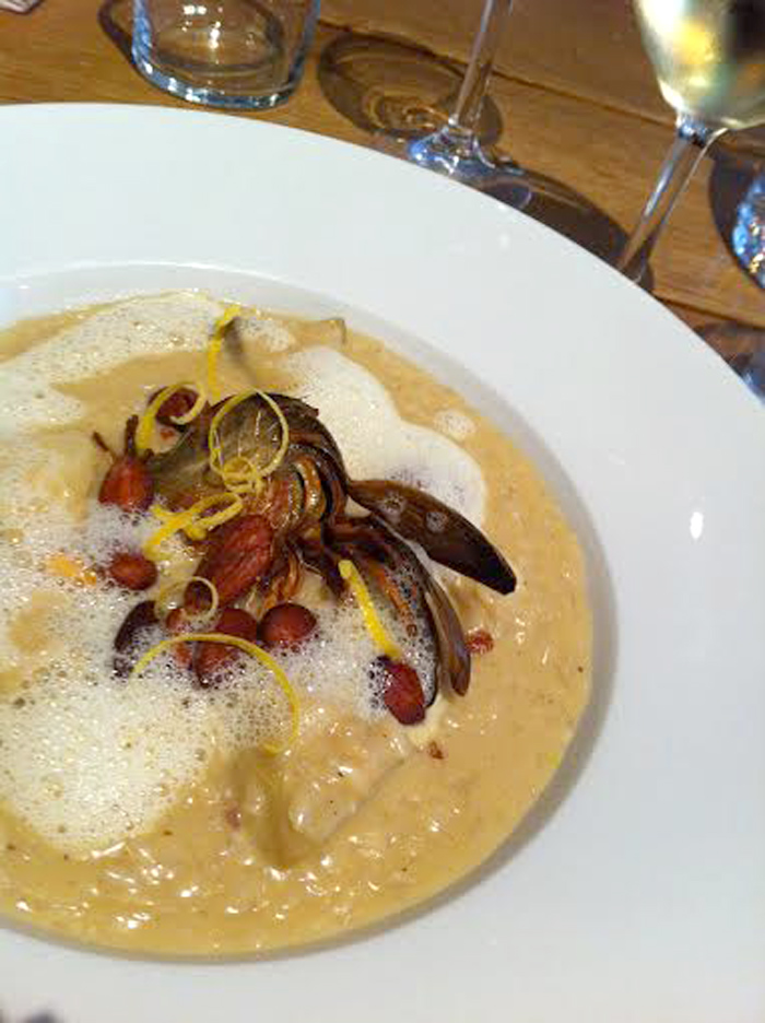 Vihdoin törmäsin Karlaplanilla kivannäköiseen ravintolaan nimeltä Broms. Broms näytti juuri siltä paikalta jossa halusin illallistaa, ja kun myös paikan menu näytti hyvältä astuin sisään. Tilasin artisokkarisoton ja kysyin tarjoilijalta viinisuosituksen. Istuin jo pöydässä viiniä siemaillen ja ruokaa odottaen kun muistin että hemmetti soikoon, minullahan ei ollut mukana Visaa eikä juuri rahaakaan. Olin tukehtua viiniin kun tajusin että tiskaushommiksi meni.