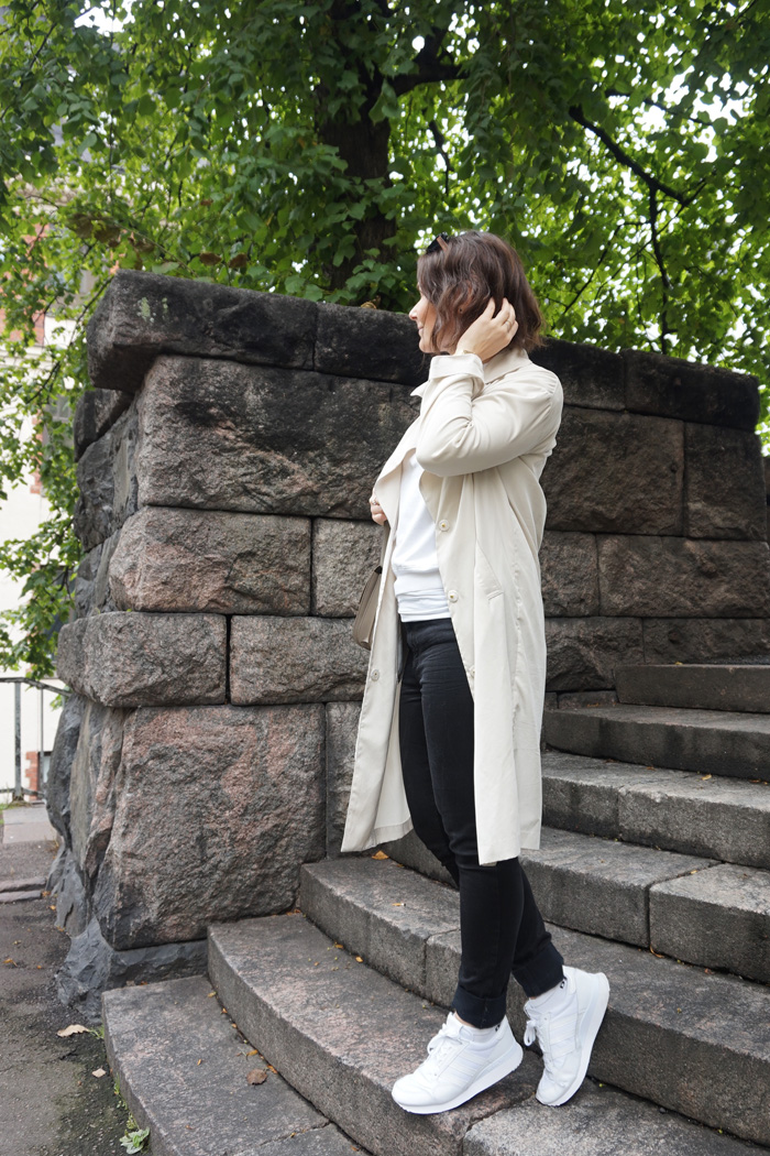 Mutta nyt ainakin muutama viikko mennään vielä (kohta ei enää niin) valkoisilla lenkkareilla kevyen takin helma lepattaen! Joko Te olette vaihtaneet kesävaatteet hieman syksyisempiin tamineisiin?
