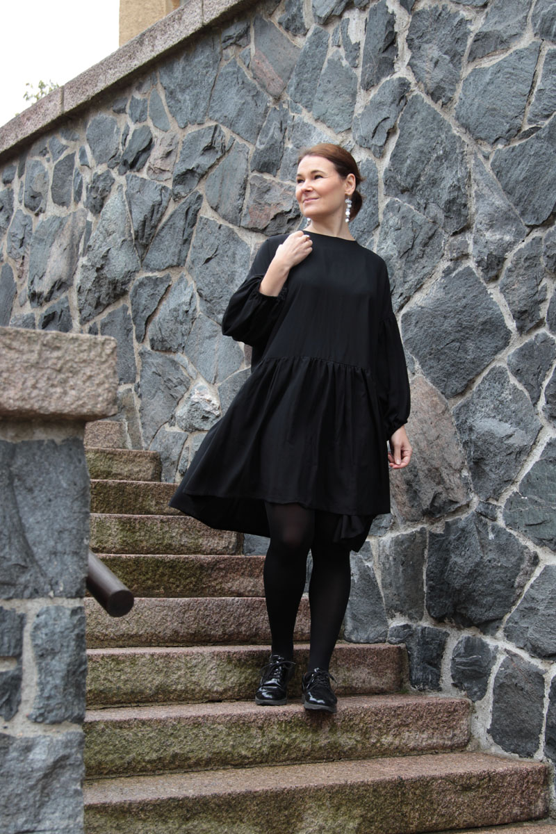 mekko Miia Halmesmaa* (saatu Weecos brändilähettiläänä v. 2020), korvikset Oikku Design* (saatu Weecos brändilähettiläänä v. 2020), sormus Lillan Helsinki, kengät Pomar*