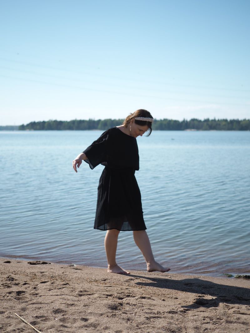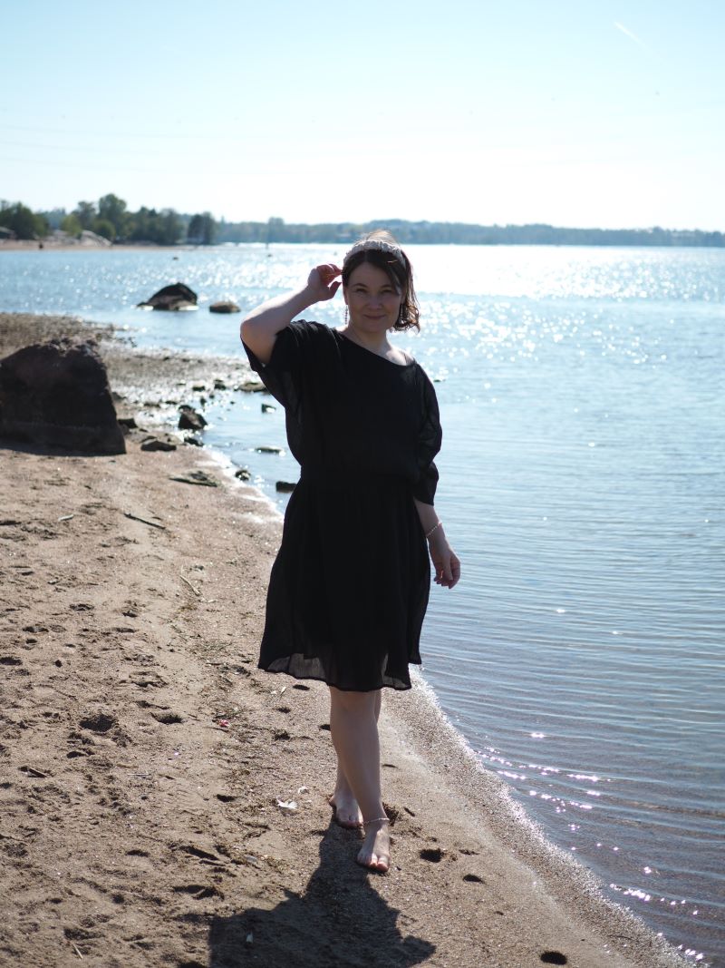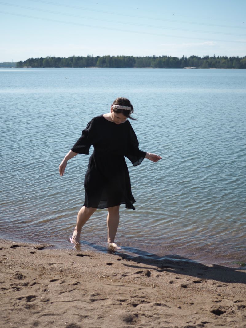 mekko Samuji, panta VS Design, helmikorut itse tehty