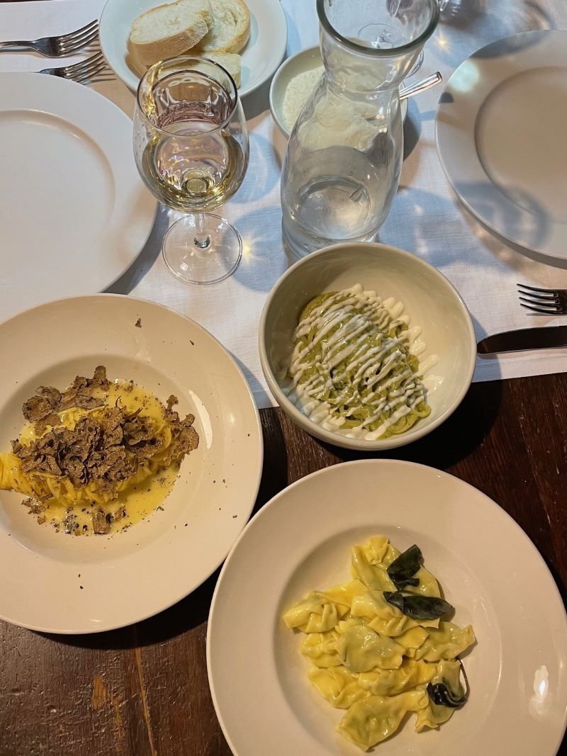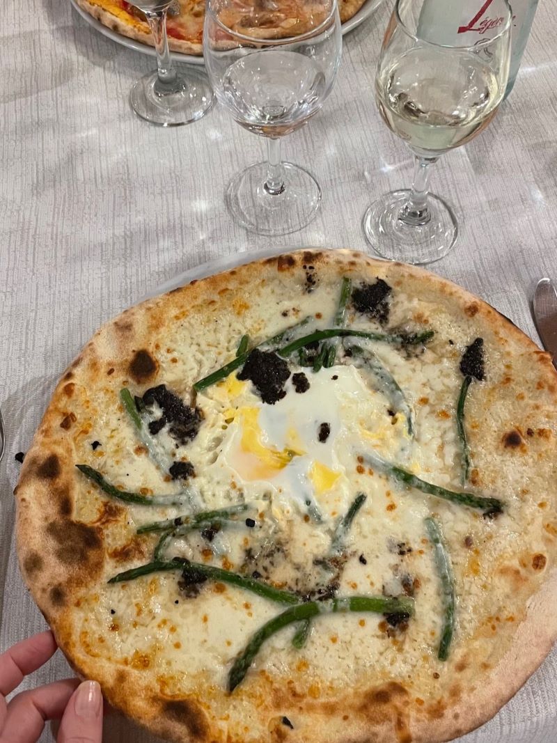 Söin älyttömän herkullisia pastoja (tryffeli-, pistaasi-, pinaatti- ja salviapastat), herkuttelin taivaallisella hernerisotolla ja pizzoiksi valikoituivat perinteinen Puttanesca (tomaatti-mozzarella-oliivi-kapris) ja vähän erikoisempi valkoinen pizza jossa oli tuoretta parsaa, tryffeliä ja kananmunaa. Ai-van taivaallisia kaikki!