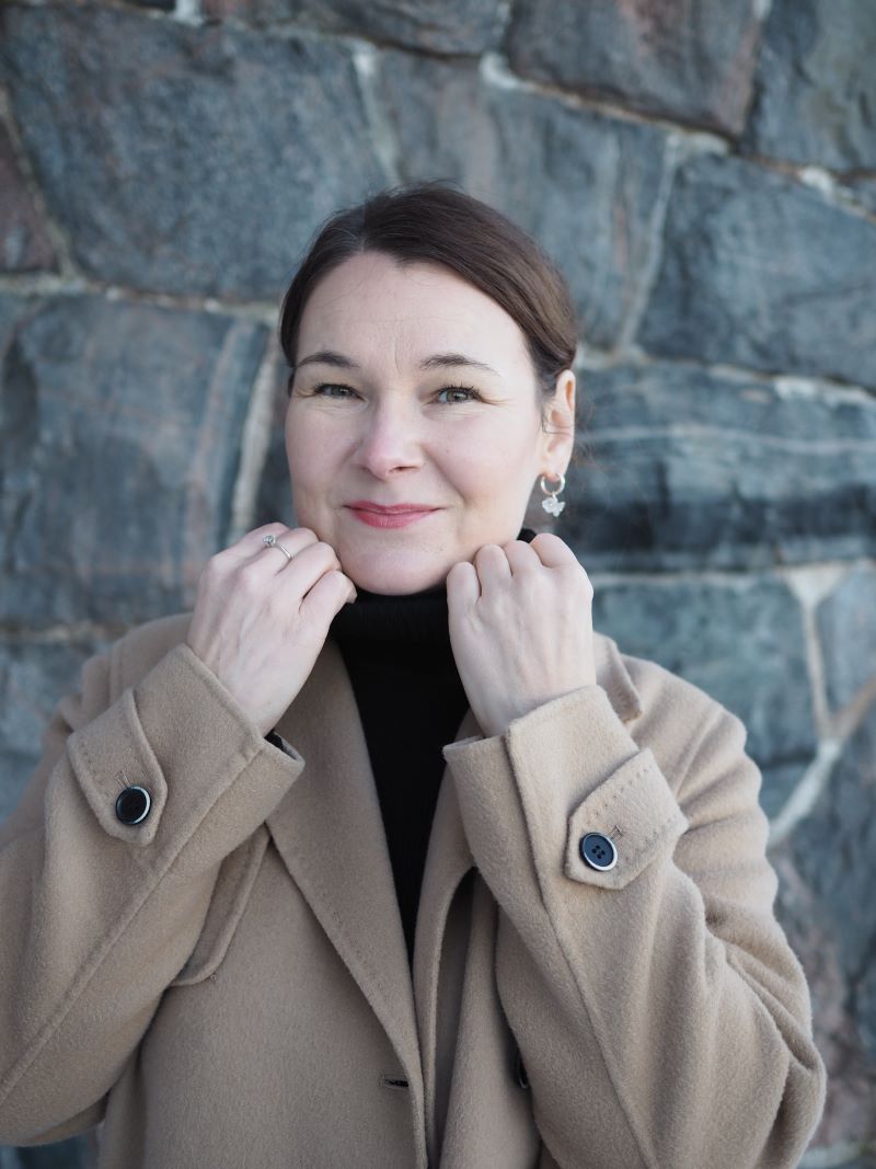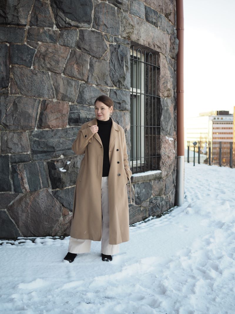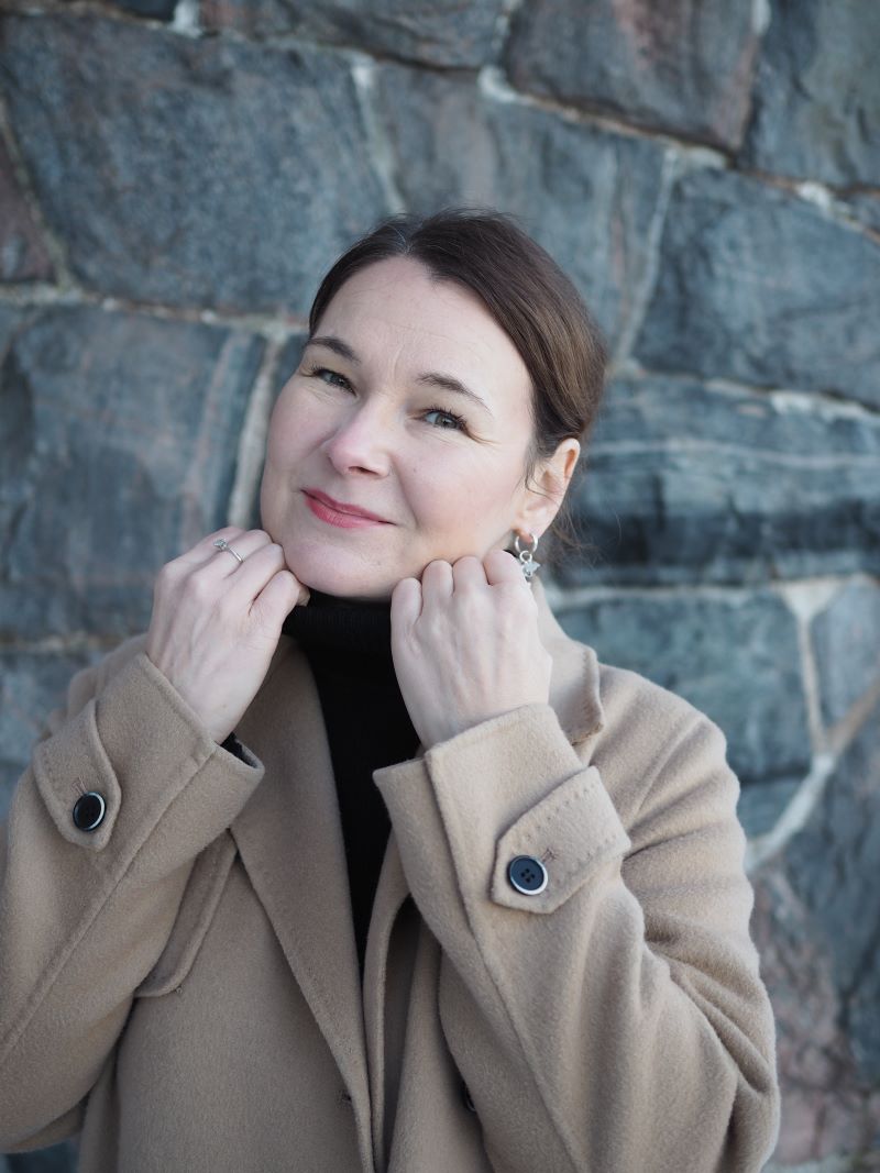 villakangastakki PBO, poolo Samuji, samettihousut Archetype, kengät Pomar (saatu), korvikset Never Too Lake
