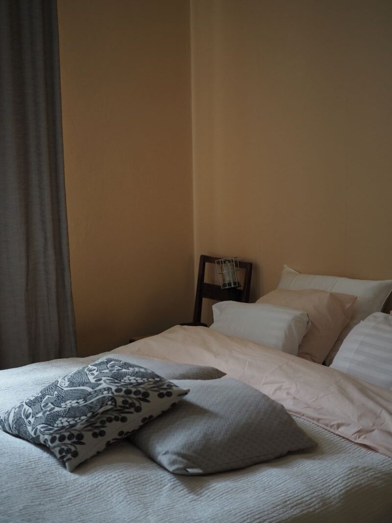 Meillä oli tarvetta päivittää myös tyynytilanne, joten tilasin samaan pakettiin meille uudet muhkeat tyynyt. Voi että miten ihanalta, ja myös kivan hotellimaiselta, tuntuu, kun sängyssä on tavallista suuremmat tyynyt! Miten näin pieni asia kuin 10cm leveämpi tyyny, voikin tehdä näin iloiseksi!
